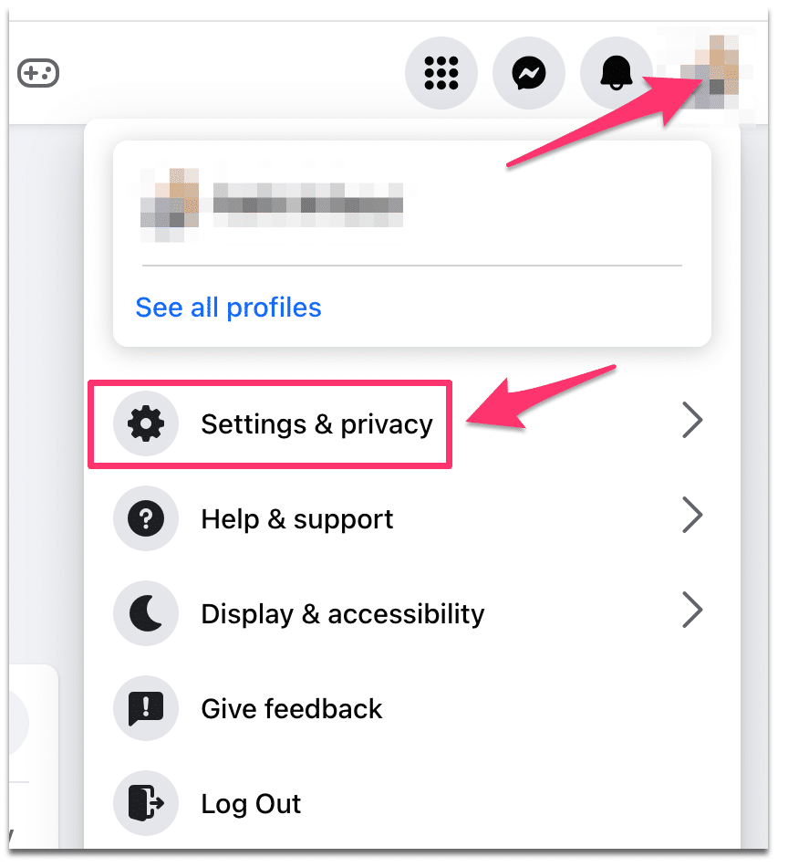 Open his profile page by clicking on the photo, and then, click on “settings & privacy”.